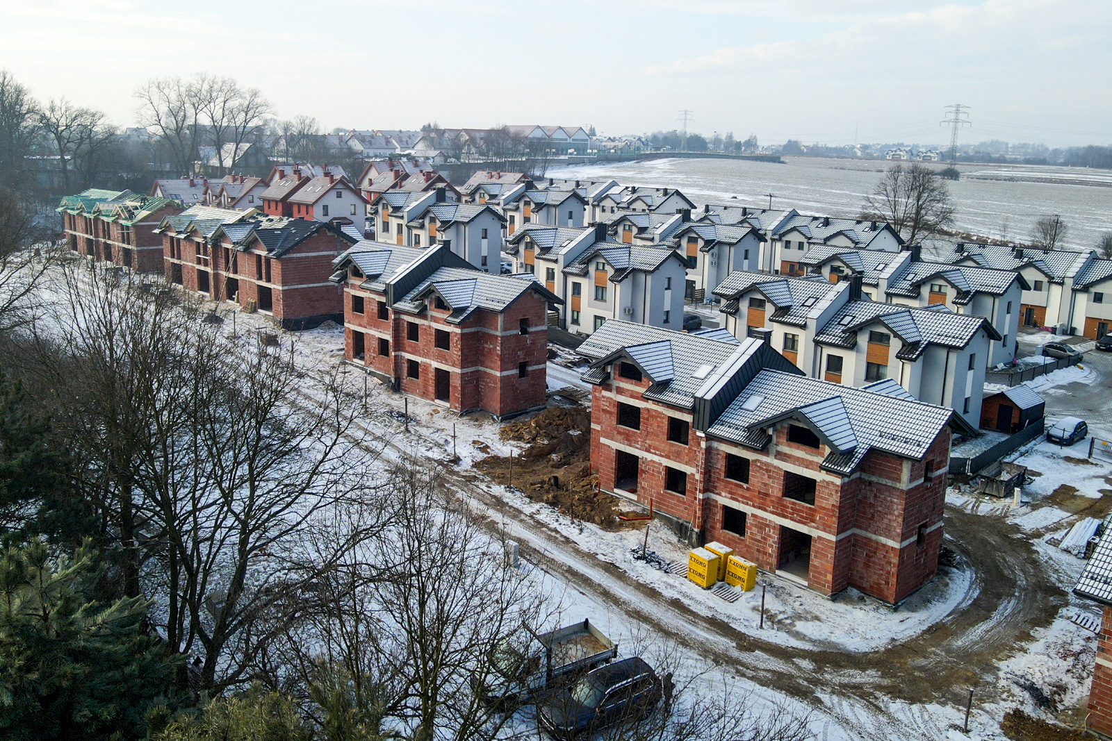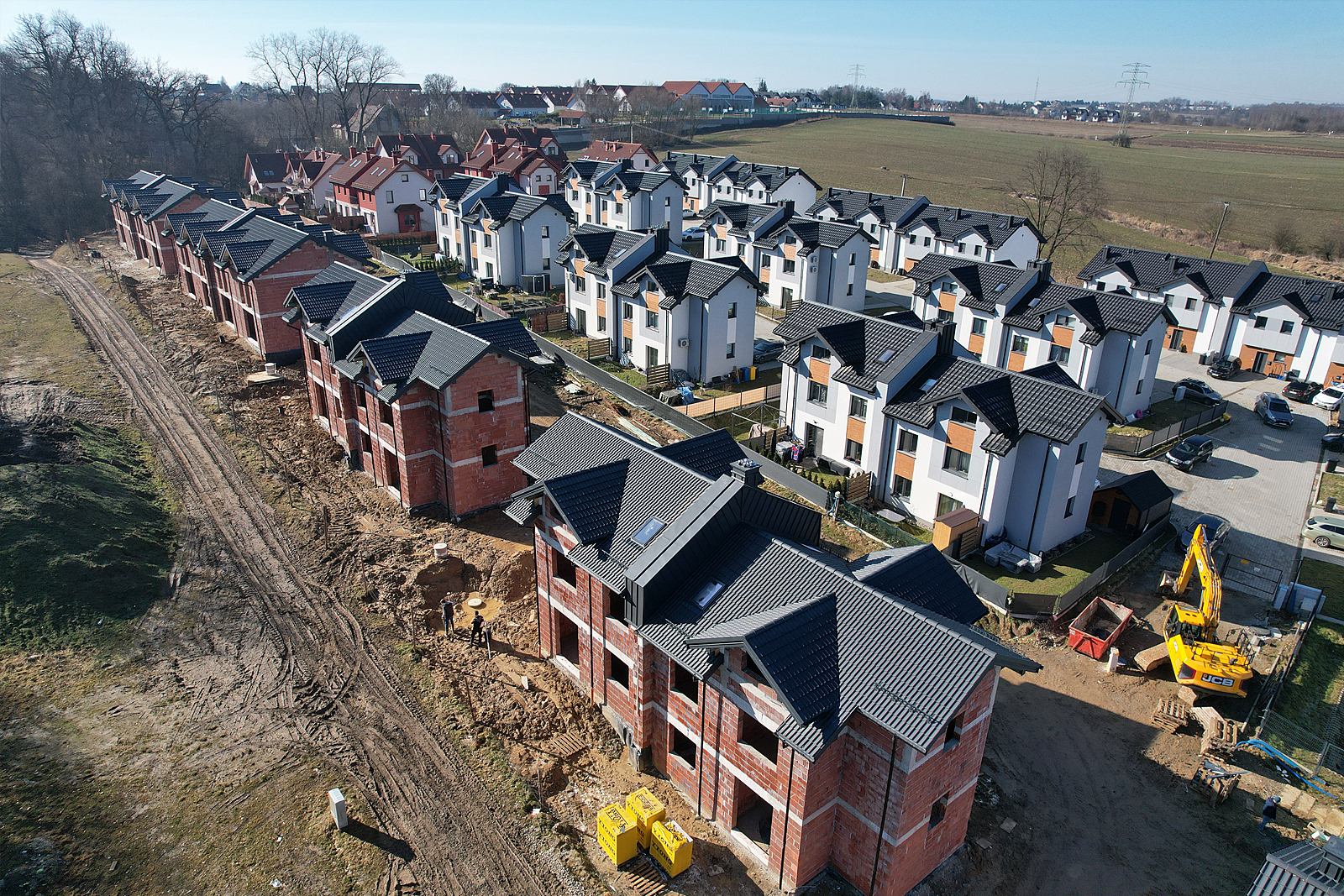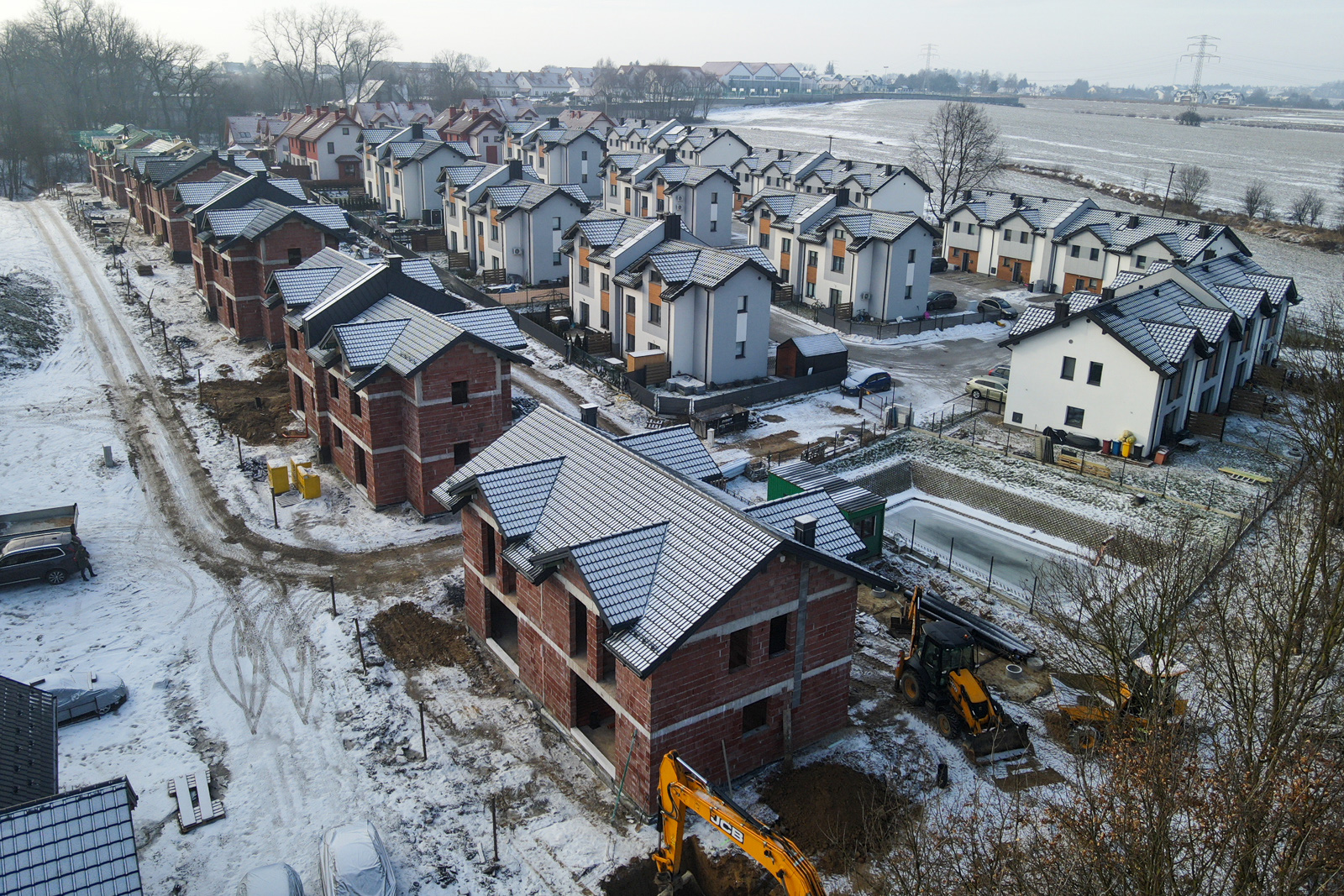 Etap I osiedla: dach nad segmentami N i S. Etap II osiedla: fundamenty i ściany parteru